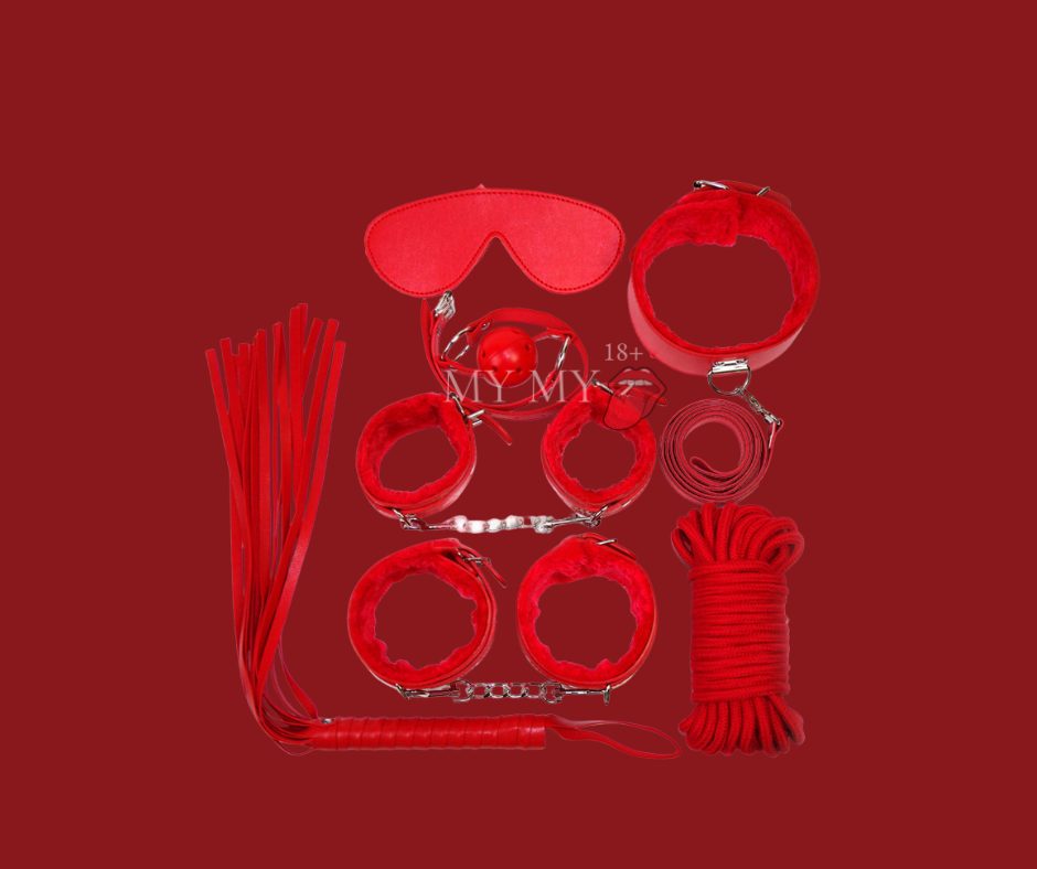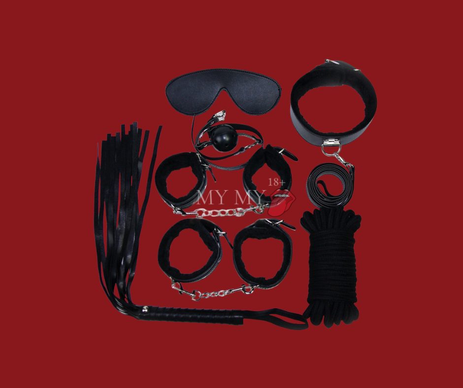 | Số lượng | 7 món phụ kiện (Bịt mắt, còng tay, còng chân, roi da, khóa cổ, bóng ngậm, dây thừng) |